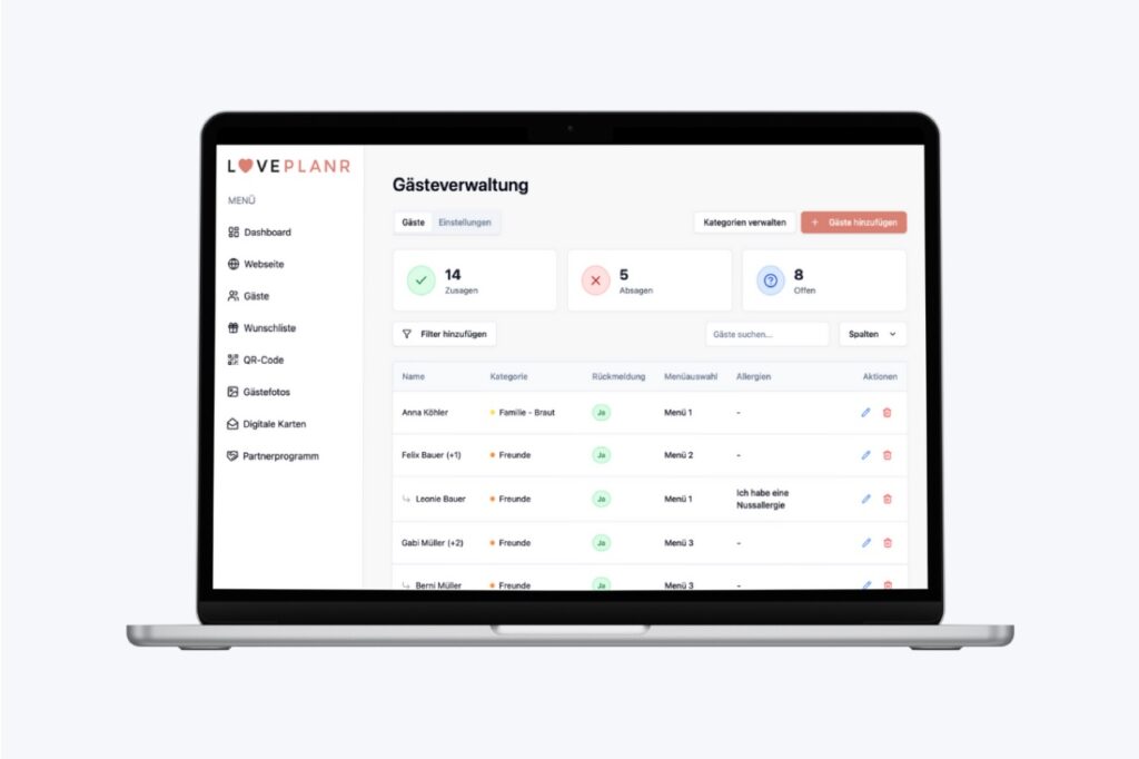 Teilt alle wichtigen Infos, sammelt Zusagen und haltet eure Gäste immer auf dem Laufenden.