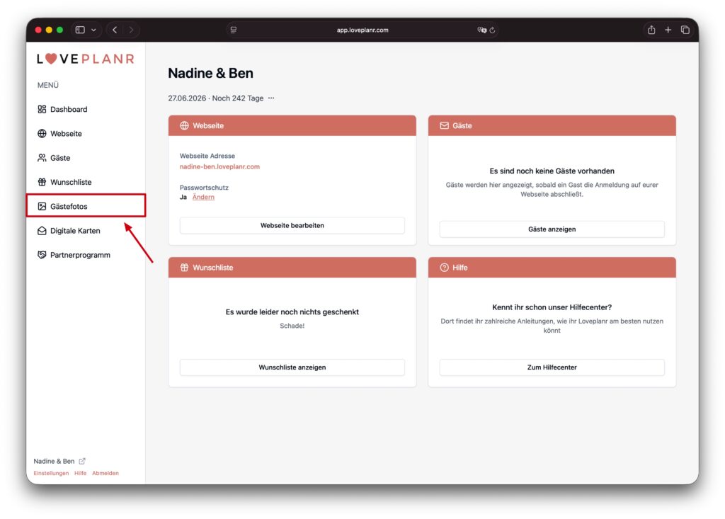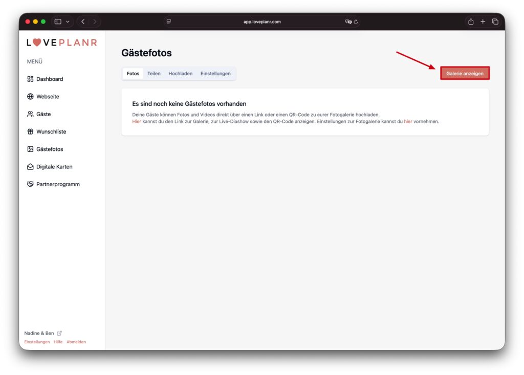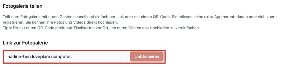 In unserem Beispiel lautet dieser: nadine-ben.loveplanr.com/fotos