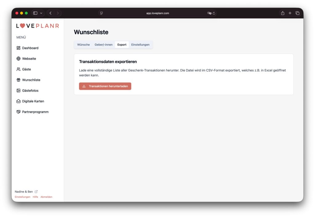 Fehlt euch eine Funktion oder braucht ihr Hilfe beim Einrichten? Unser freundlicher und schneller E-Mail-Support steht euch jederzeit unter support@loveplanr.com zur Verfügung. Wir helfen euch sehr gerne weiter!